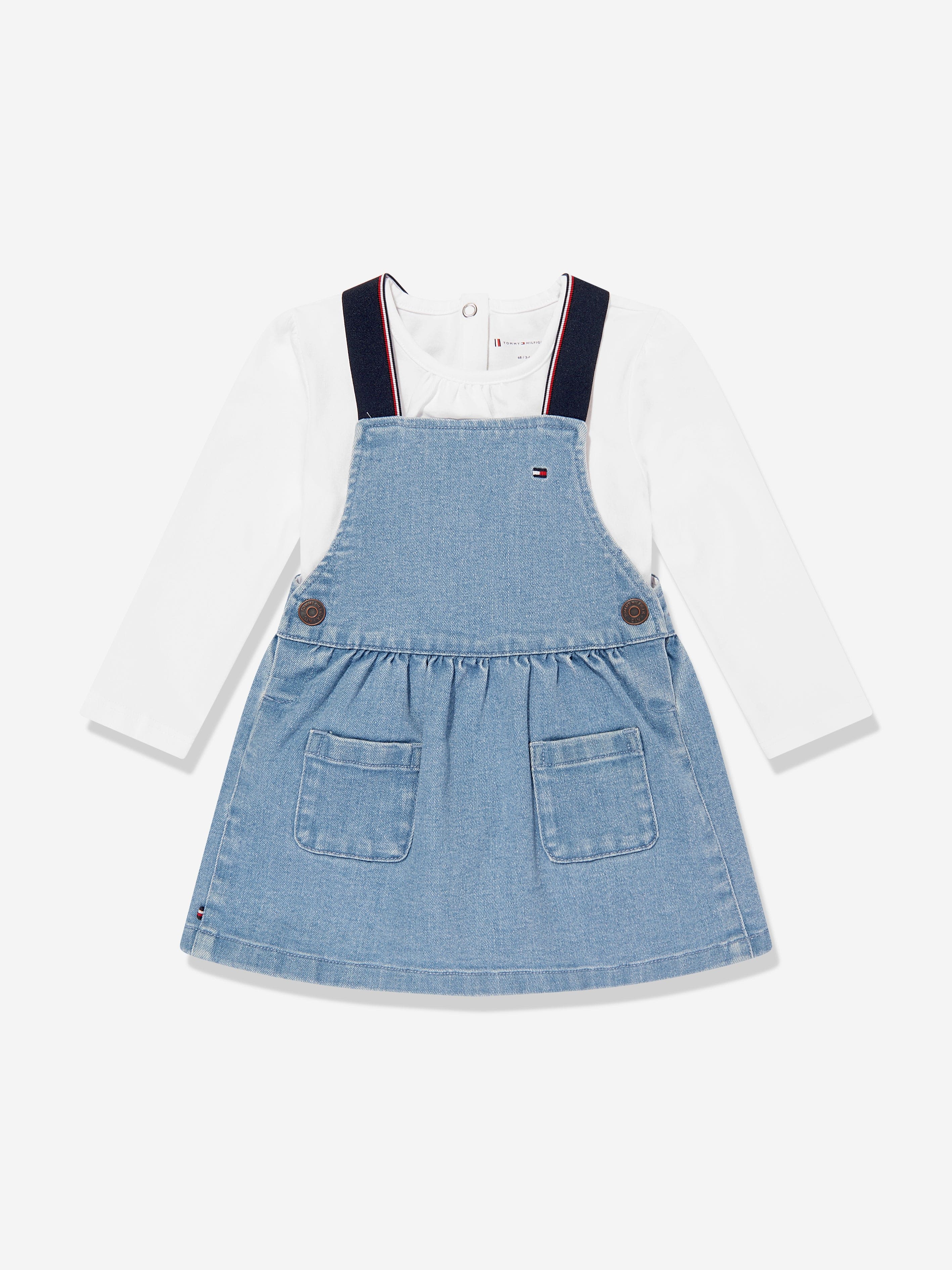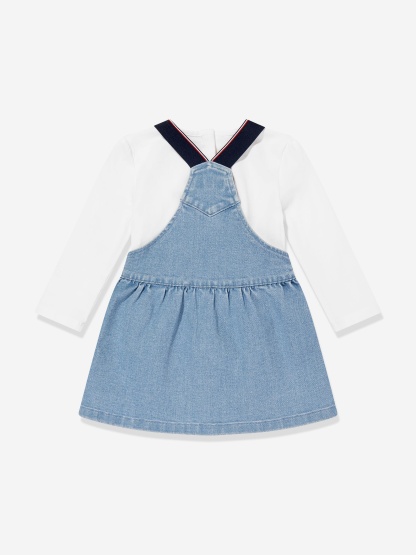 Tothtmmy Hilfigthter Baby Girls Denim Pinafore Dress Set in Blue