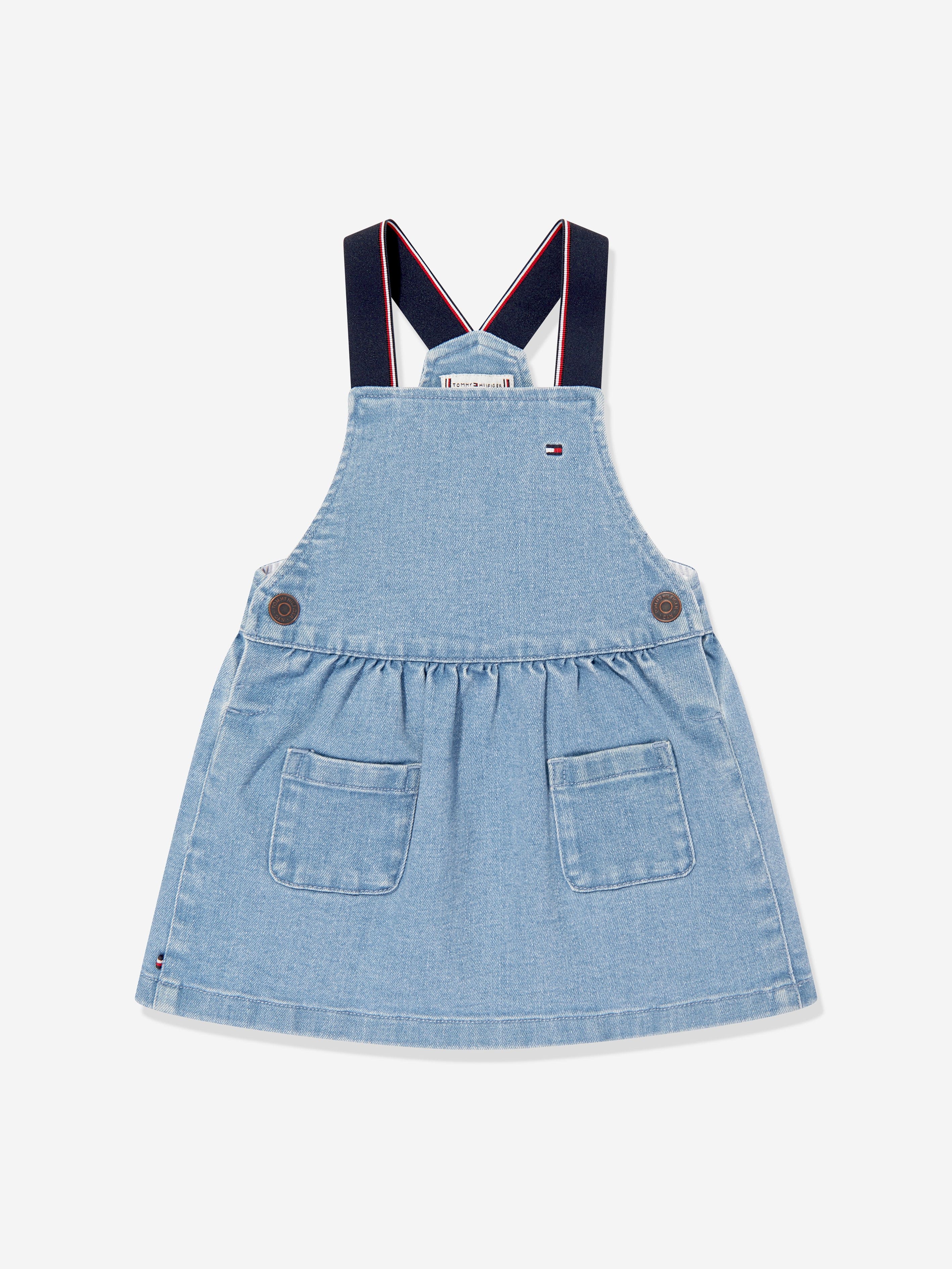 Introduce a touch of timeless charm to her wardrobe with the Tommy Hilfiger Baby Girls Denim Dungaree Dress in Blue, expertly crafted for SS2025. Enhance her look with these enticing features: