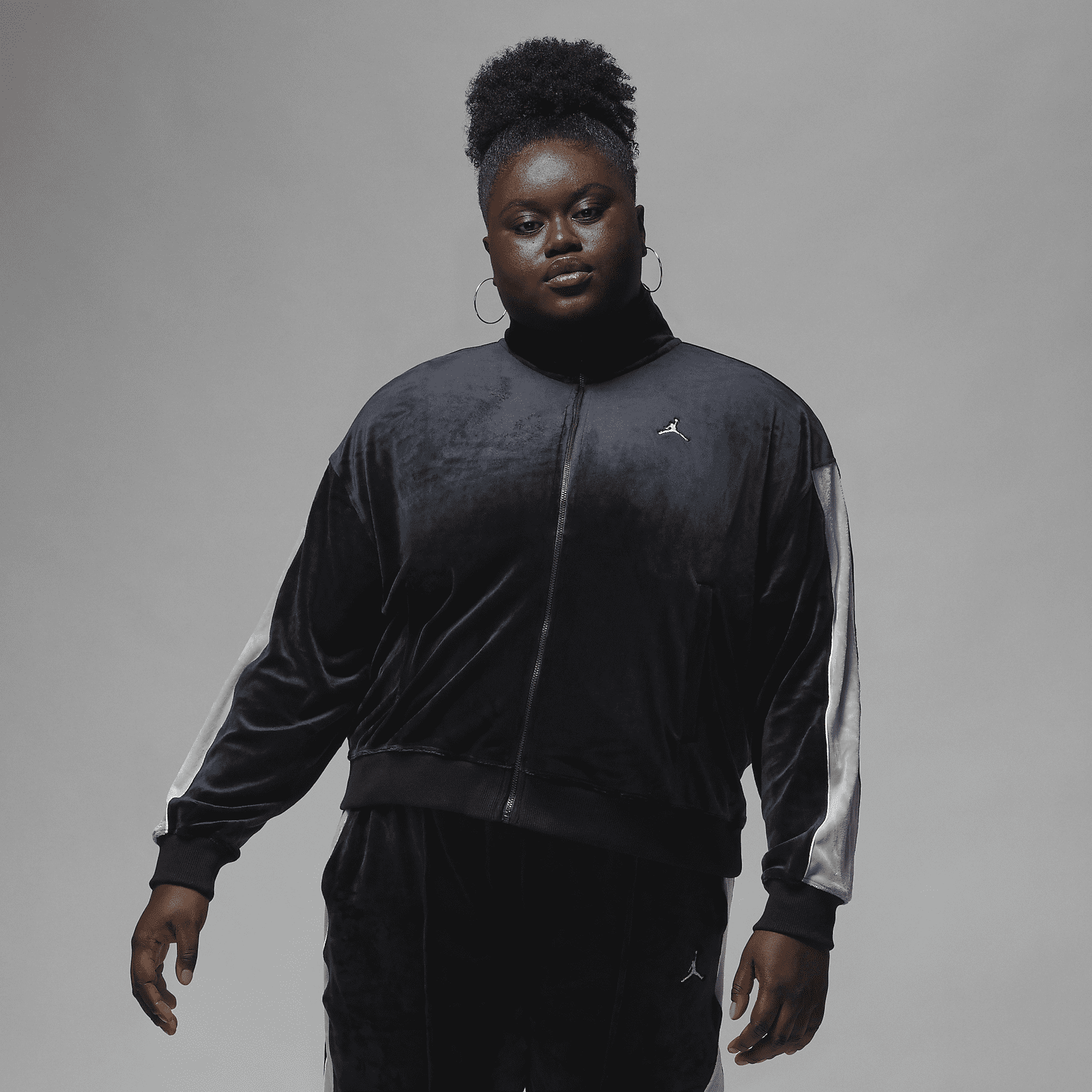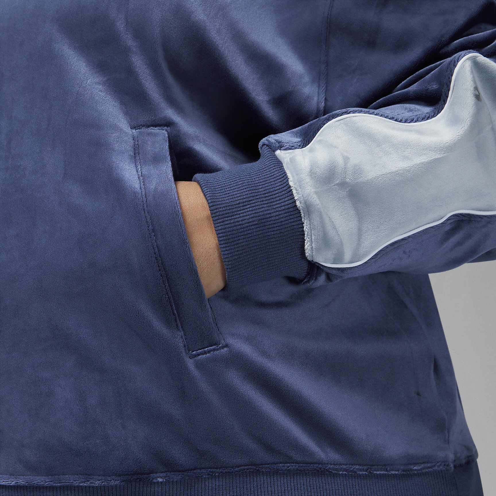 Treat yourself to some comfort this holiday season. You'll look like pure luxury in this oversized velour jacket, whether you're taking laps around the track or relaxing in the bleachers.